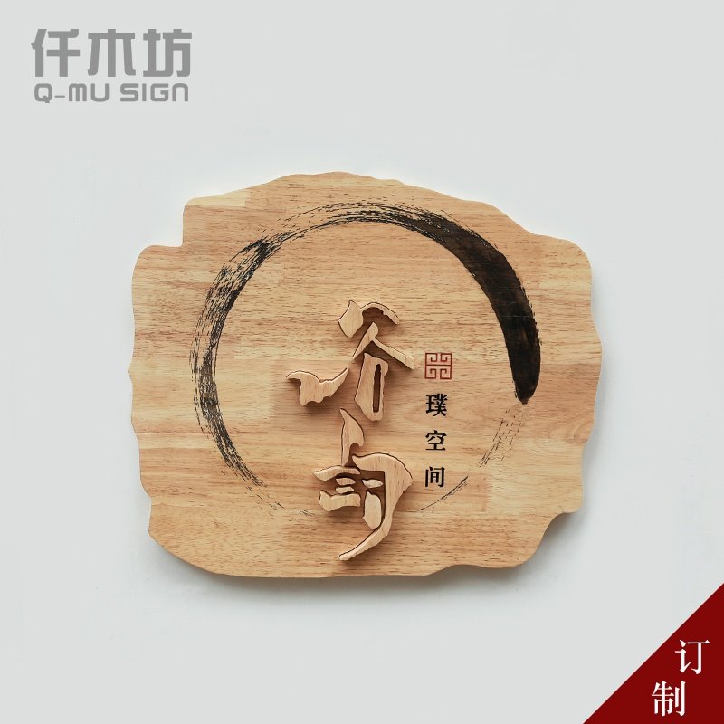 艺术实创意仿古装饰logo牌匾禅招牌个性木质标志广告木境定制牌木热门设计联盟服务商