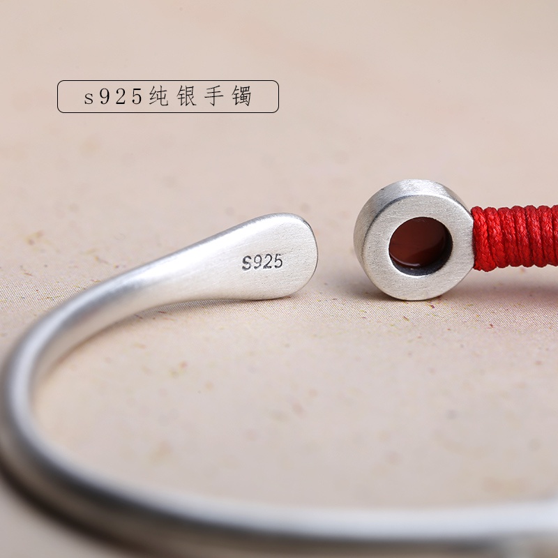 高档文艺925纯银细手镯砚实心开口镶嵌南红玛瑙小众设计中式手热门设计联盟服务商