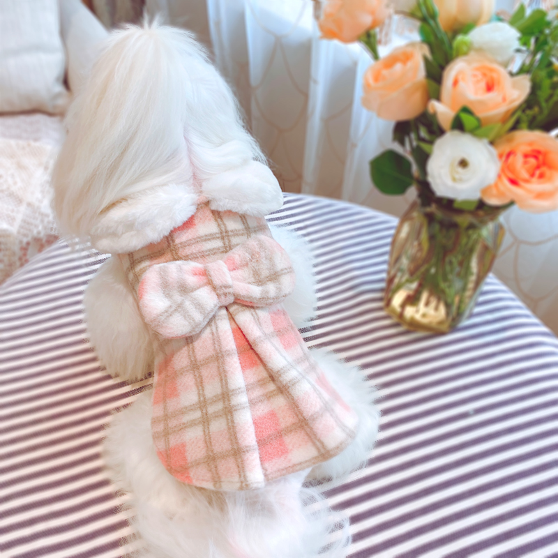 秋天格纹连衣裙子泰迪宠物狗裙子冬季加绒服饰可爱秋装礼服格子。热门设计联盟服务商