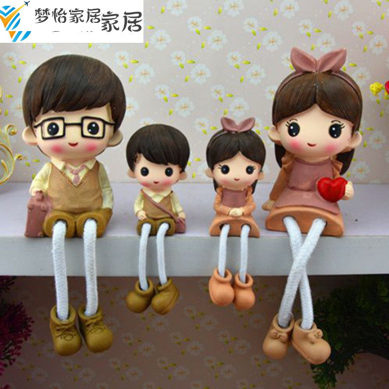 创意礼品吊脚娃娃家居装饰品一家四口装饰礼品小摆件。热门设计联盟服务商