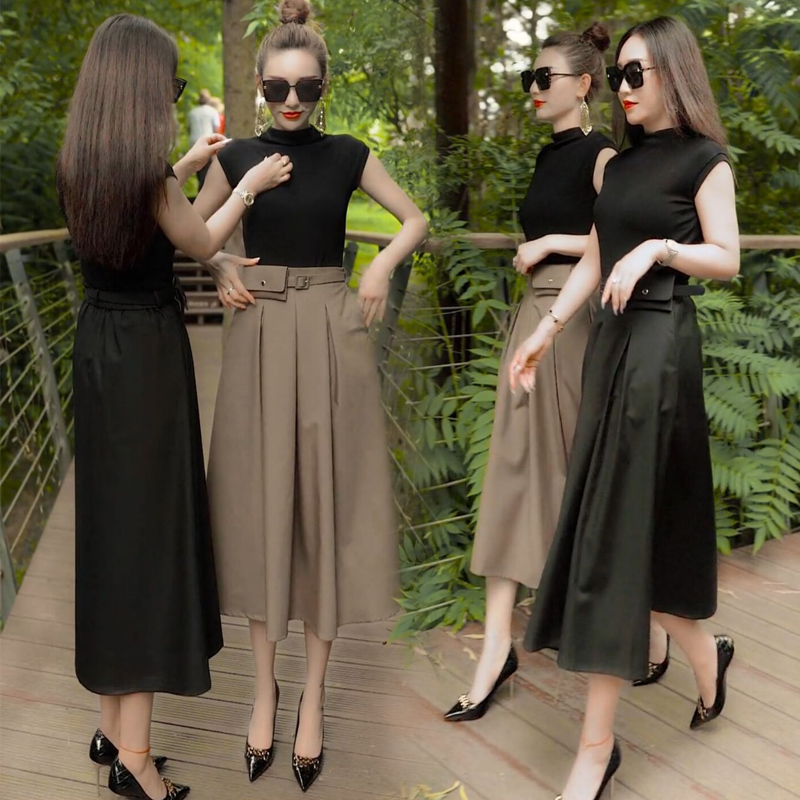 .网红款套装裙女2021早秋新款洋气百搭上衣+高腰工装半身裙.热门设计联盟服务商