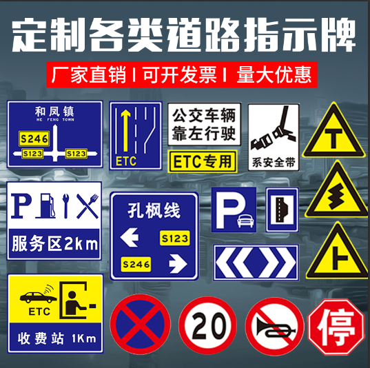 交通标志牌三角圆安全指示牌反光标牌交通牌道路警示牌标识牌铝板热门设计联盟服务商
