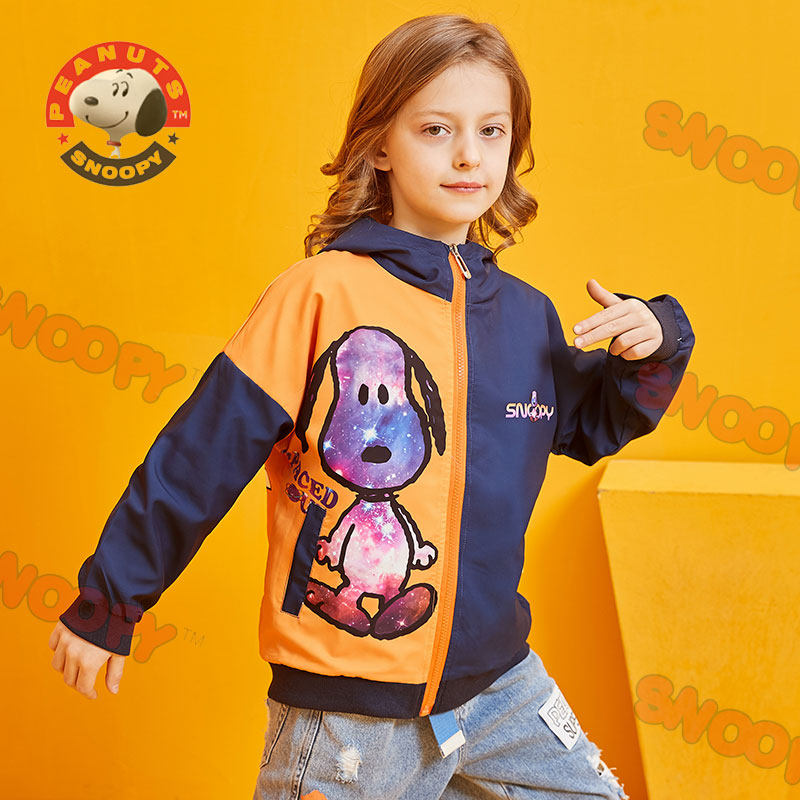 史努比童装2021春秋新款时尚连帽夹克男童休闲外套撞色卡通拉链衫热门设计联盟服务商
